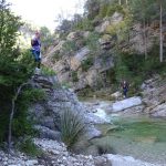 Un vegada aquí resseguim el curs del riu a l’inversa i anar creuant-lo 340 vegades degut al seu caudal, alguna d’elles, dos dels aventurers ens vam tenir que descalçar per seguir el ritme d’aquest tercer que grimpava com ningú.