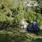 La primera visita a la Font del Mascar, com raja, que bonica i espectacular que baixa la cascada, d’aquí cap a la Mola, senderons i corriols molt ben marcats i cap al “Mas del Chocolato” passant per una indicació d’un gran soci de la UEC Tortosa que ha deixat en un encreuament. Els meus agraïments al respecte. Pròxima parada “Font del Bunyol” aquí sí, amb parada obligada a fer un beure i unes fotografies, llavors sortim a la pista a ritmet…. a algun li fan treure los fetges però arribem a “l’Enclusa” curiositats que ens deixa la natura i que fan més bonic el poder descobrir raconades. Unes fotografies, veiem, amb el dia preciós que tenim, el Pirineu al fons i continuem amb la nostra aventura, ara amb parada al “Mas del Lino” on esmorzem al solet i aprofitem per recuperar forces per emprendre la baixada fins al Ulldemó, un dels rius del Port i per un servidor el més espectacular.